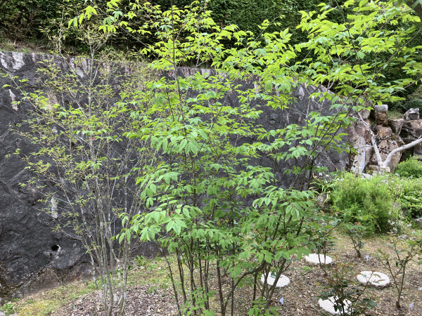 ちょうど1年前の4月下旬、エキップ英語教室の庭にアオダモの木を2本植えた。野球のバットに古くから使われてきた成長が緩やかな木だが、最近庭木として人気があるらしい。株立ちのものを求めて、夏の午後、建物の日陰になる東側の庭に植え、そのうちパーゴラを備えた屋外テラスなど設けて、避暑の庭にするつもりだ。