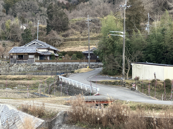 その間に白い欄干が見えますか?そこに最寄りの藤木橋があります。